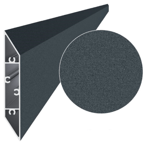 Die glatte Anthrazit Oberfläche wird im Ofen eingebrannt und erfüllt hohe Anforderungen an UV-Beständigkeit, Farbhaltbarkeit und Schutz vor Vergilbung.