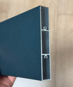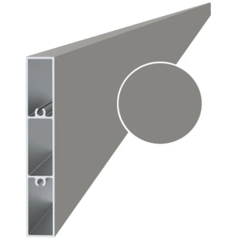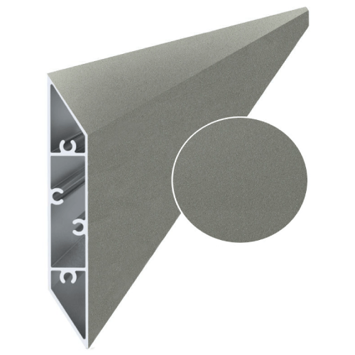 Profil ist oberflächenbehandelt durch Pulverbeschichtung mit Struktur. Nach dem Auftragen wird das Pulver im Ofen eingebrannt. Für die Beschichtung wird eine matte, duroplastische Pulverlackfarbe auf Basis von Polyesterharzen mit Qualicoat-Zertifizierung verwendet, die für den Einsatz im Außenbereich bestimmt ist.
