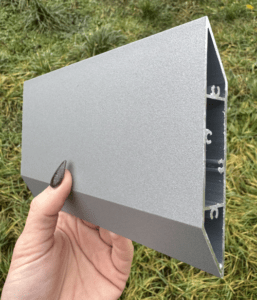 Aluminium ist ein sehr langlebiges, korrosions- und witterungsbeständiges Material. Die Lamelle besteht aus hochwertigem EN AW-6060 T66 Aluminium und wird ohne Oberflächenbehandlung geliefert.